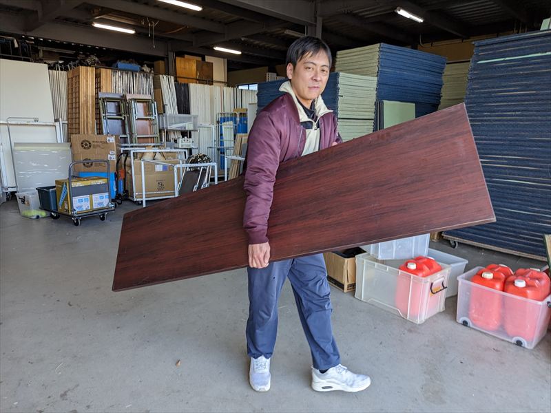 一見会議用テーブルのように見えますが、こちらは座卓としても、椅子に座った高さにも対応できる便利な2way仕様となっております!折り畳み式なので高さ変更もとっても簡単です!