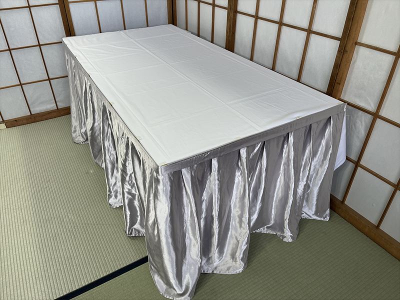 テーブルの脚を隠し、会場を華やかな雰囲気に演出するテーブルスカートです!