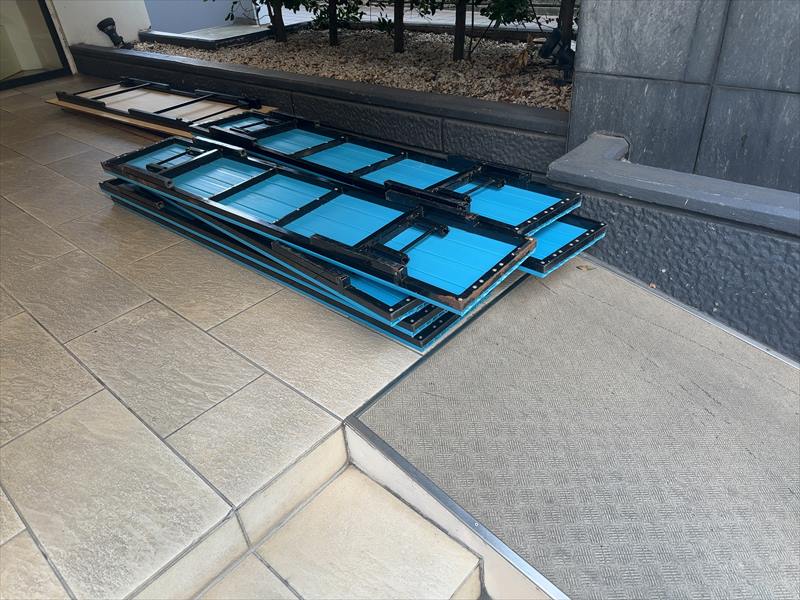 この商品は4人が座れるロングサイズですが、驚くほど軽量で持ち運びが簡単です! アイボリーとブルーの2色からお選びいただけます。どちらの色も軽やかなコントラストが特徴で、野外イベントや学園祭などに最適です!