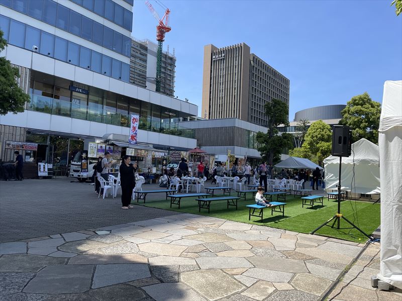 屋外イベントの待合スペースに軽量ベンチを設置しました!