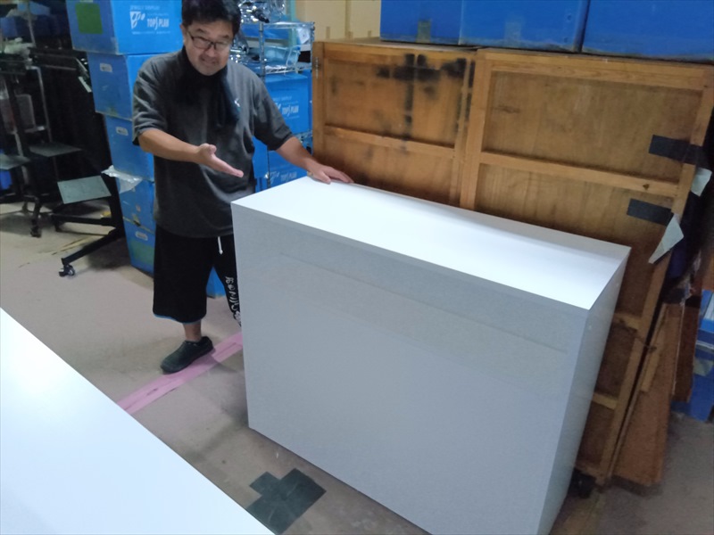 こちらのハイカウンターは、高さ1メートルで、結婚式やパーティなどの受付台として作業するのに丁度いい高さです!また、50kgの重さまで耐えられるので、パソコンやレジなどの、備品を置いていただくことも可能です!