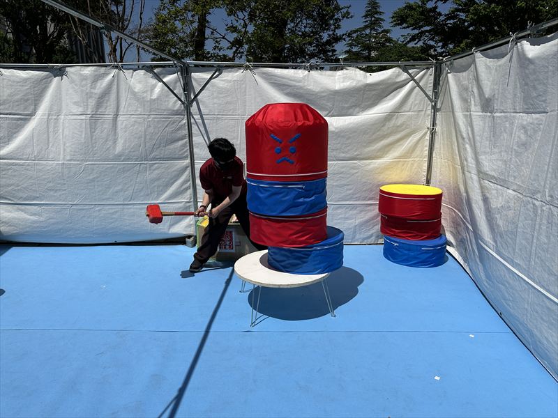 難易度が高めなので、子どもだけでなく大人も十分に楽しめるようになっています!巨大だるま落としと、だるま落とし(子供用)があります!
