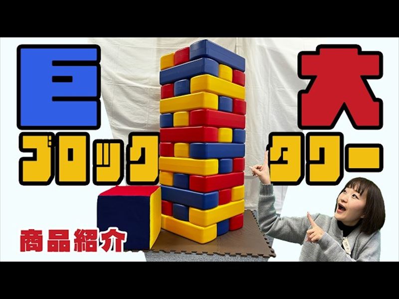 ポリエチレン素材で軽量かつ安全な巨大ブロックタワーです!赤・青・黄の色合いがカラフルで子供たちに大人気の商品です!全身使って遊ぶため、集中力や積み上げの技術を養い、知育にもオススメ♪子供会やイベントで盛り上がること間違いなし!専用サイコロが付属で、カラーブロックを使った対決も楽しめます。さらに、ズレ防止のパズルマットもセットになっております!