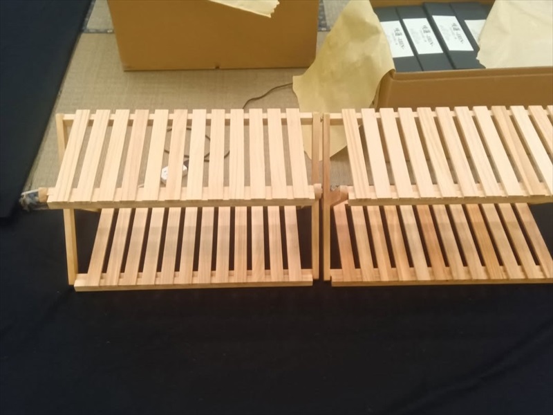 今回は呉服の展示会でご利用頂きました!小物や丸帯を展示する予定です!折りたたみ式なので、運ぶ際にもコンパクトな収納が可能です!手などを挟まないようにお気をつけ下さい!