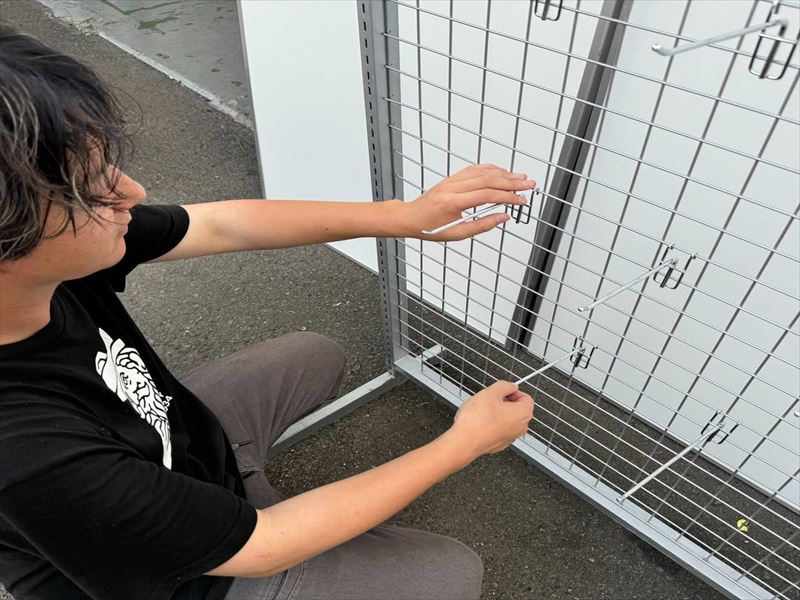便利なフックが付いたメッシュシェルフで商品陳列が簡単に!展示会などでのアイテムディスプレイにオススメ!