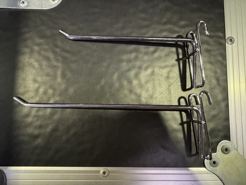 使いやすさ抜群のメッシュ棚とフックがセットになった展示用品です! 背面のメッシュ部分は、POPのディスプレイにも対応しており、アイデア次第で自由自在に演出ができます。標準ではフックが9本付いていますが、「展示物が多く、フックを追加したい」という方には、15cmまたは20cmのフックを1本330円で追加レンタル可能です!ご希望の長さや数量をお知らせください!