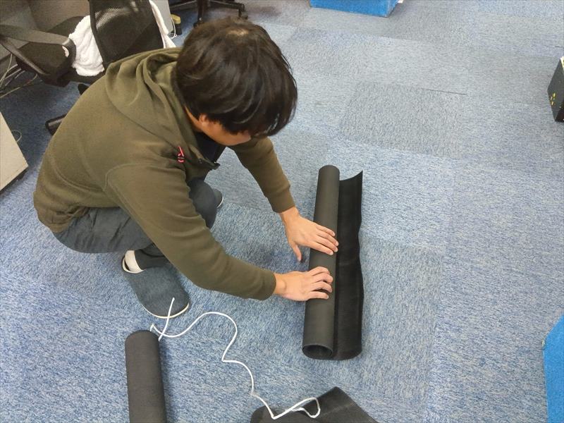 ケーブルの保護や通行する人がケーブルに引っかからないよう保護するマットです。配線が多く外観を損ねる場合も、マットで隠すことですっきりした見栄えになります。丸めることが出来るので、使用しない時も省スペースで収納可能です。