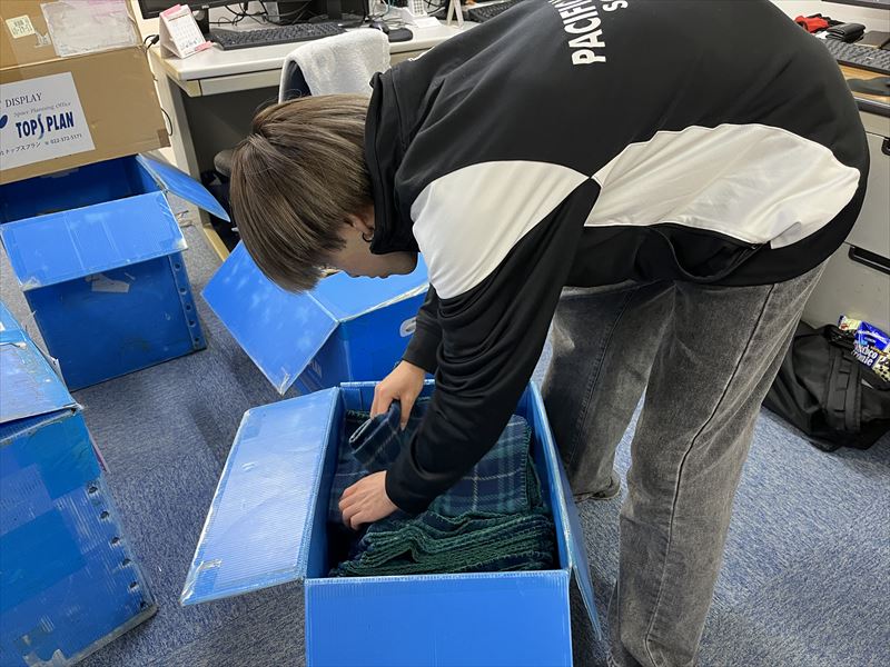 広いイベント会場で身体が冷えないようにとご利用いただきました!ストーブなどの暖房だけではなく、膝や肩から掛けて身体を温めることができます!