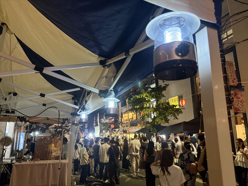 先日の屋外イベント出店では、夜でも明るく活気ある雰囲気をつくるために、ランタンをたくさん吊り下げてブースを彩りました!