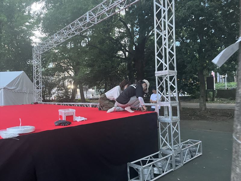 新宿区にある公園内で開催されたフェスにて、会場設営を行いました。