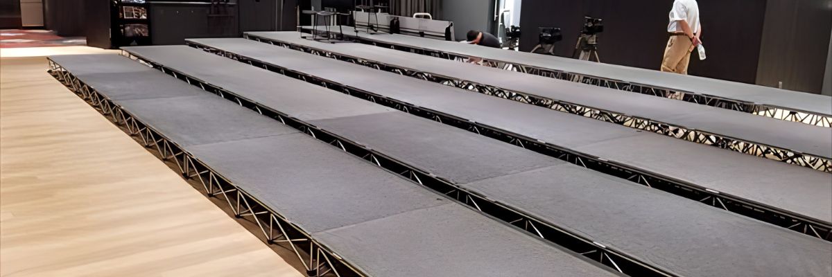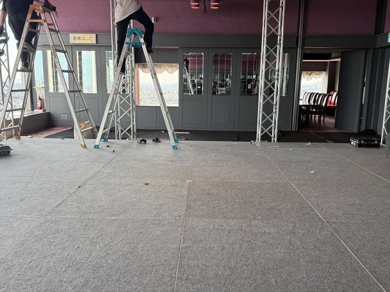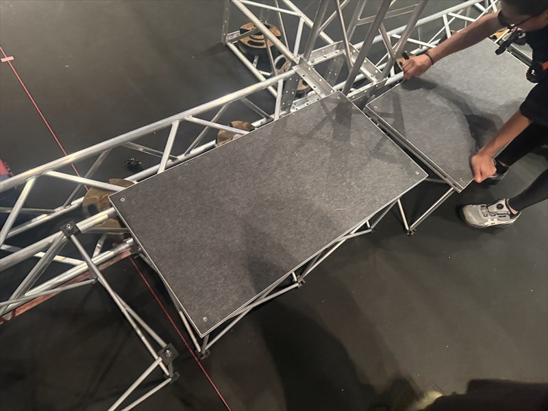 A階段の設置には、通常10~30分程度かかります!ステージの設営が完了した後、階段を設置するだけで済むため、設営作業自体は比較的スムーズに行えます!