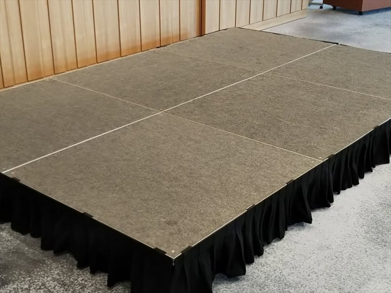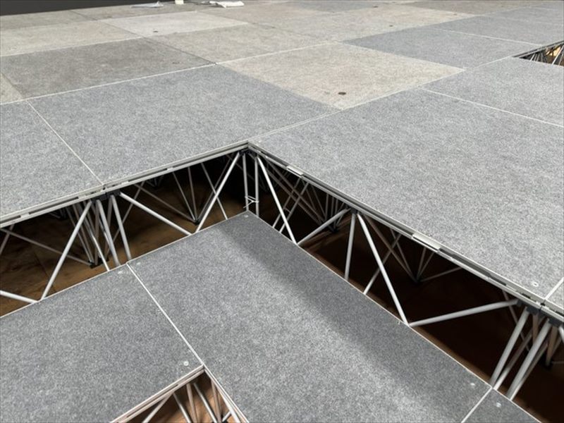 耐荷重も1セット分で約757kg/㎡となっているので、楽器やスピーカーといった重量があるものを置いても安心して使用する事ができます!それ以外でも激しい動きでは無ければ、講演や式典など幅広いイベントで利用することが出来るので屋内でのステージイベントでぜひご利用になってみて下さい!
