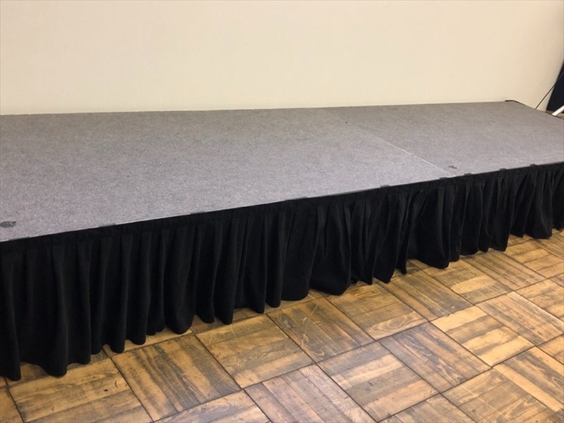 ステージを設営し終わったらステージ回りにステージ用スカートを設置しましょう! ステージ本体だけでもしっかりとしたステージとして使うことができますが、ライザーが見えてしまうと場面によっては少し不格好に見えてしまうこともあります。