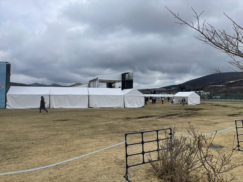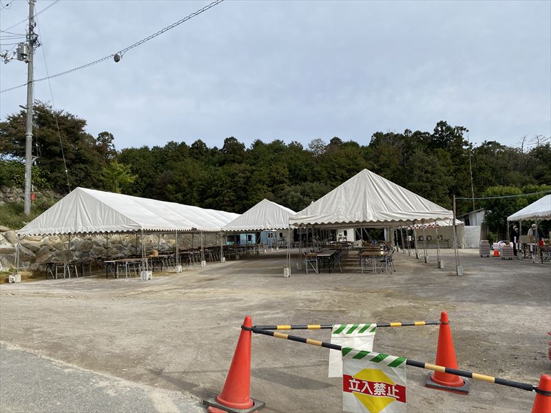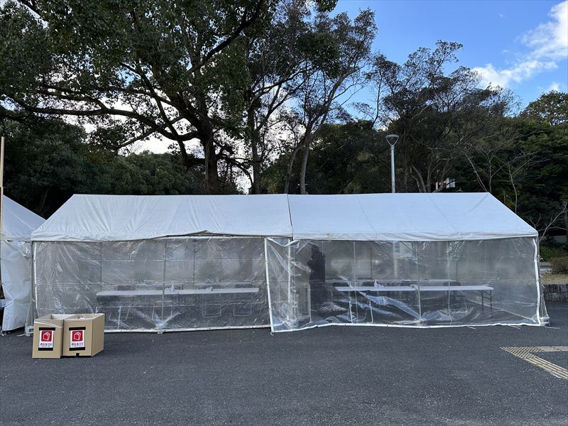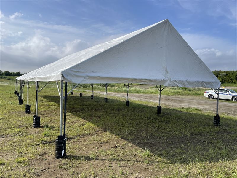 | 備考 | ご利用の際は各脚に重りとなるようなもの(ウェイト等)を乗せて頂かないと、風等で飛ばされ、倒れる事故に繋がりますので、レンタルかご用意の程、よろしくお願いします。 |