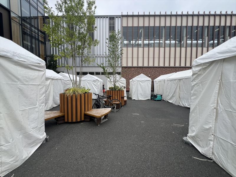 6坪テントをイベント会場で設営しました!テント内ではストラックアウトやジャンボガラポン等といったイベント用品を設置し、来場者が楽しめるブースとして大活躍です!