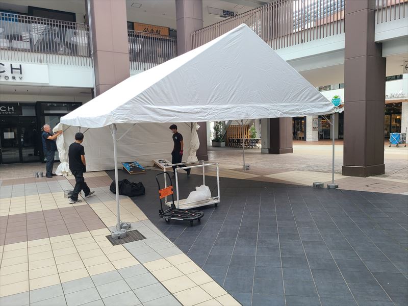 テントは受付や休憩所、物販ブースなど多用途に使用することが出来るので魅力的ですね!日差しや雨対策としても利用が出来るので会場でのブース作りにぜひご利用下さい!設営撤去も当社スタッフがお手伝いしますよ!