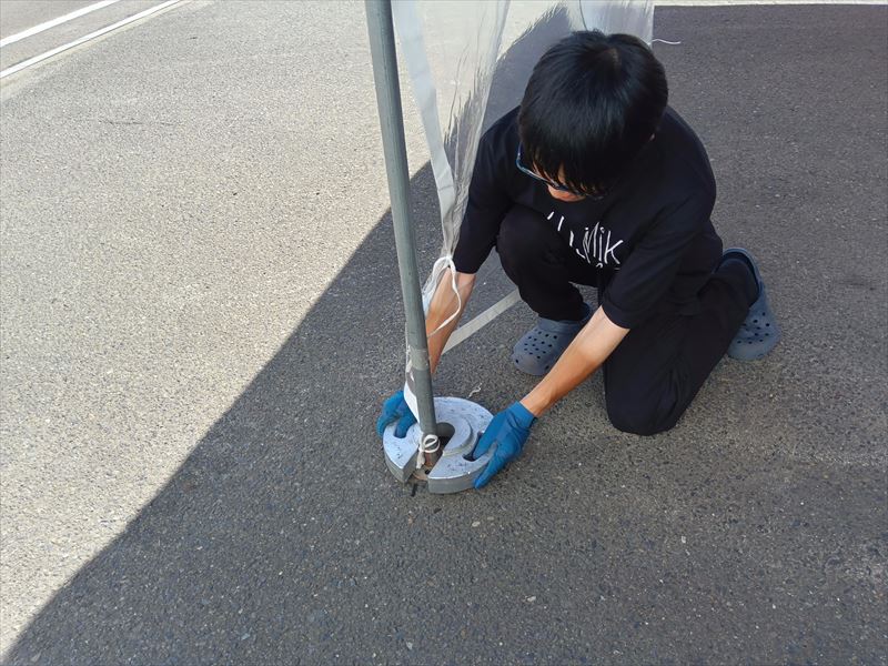 看板の設置をさせて頂いた際に、重りとして看板の足に置かせていただきました!テントの足を支える重りとしてよく見かけるかと思いますが、看板やトラスを支える際にもご利用いただけます!