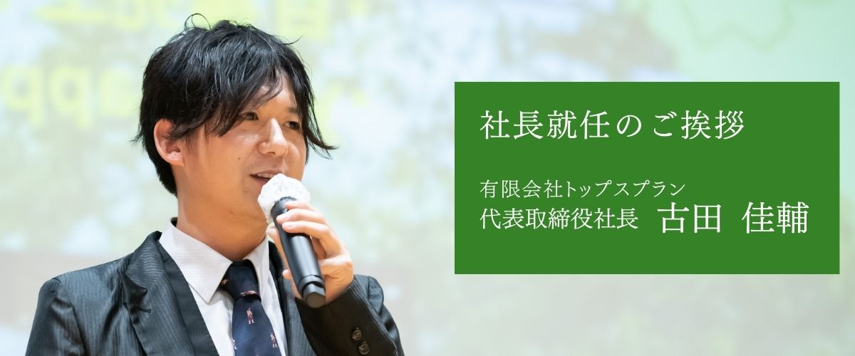 有限会社トップスプランの代表挨拶ページでは、私たちの理念とともに、代表自身の熱い想いが伝わるメッセージをご覧いただけます!