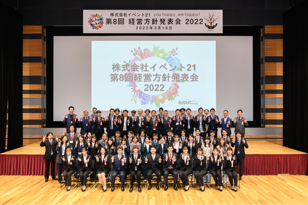 イベント21グループは、株式会社イベント21、株式会社ステップ、R&Rレンタル尾道、株式会社ソラウィル、そして有限会社トップスプランの総勢5社、グループでの拠点の数は22拠点になります! グループ間で協力し合えるので在庫数に自信があります! 何より拠点数が多いことで全国対応可能となっており、グループ間で一致団結してお客様のイベントを全力でサポートさせて頂きます!社内MBAを通して経営理念を大事にしたり、意見交換する交流の場も大事にしております!グループ一同、お客様にhappy!を届けるサービスを提供しております! 私達、イベント21グループに是非お任せくださいませ!